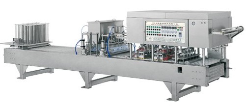 2、本机从放杯→充填(容量可调)→打生产日期→图案校对→两次热封→剪切→成品输出均为全自动作业,生产速度采用变频调速,操作方便简单。封口控温系统采用全新的电热恒温控制器(AUTOSCR)是新一代智能型加热系统,控温效果好,更加节能。